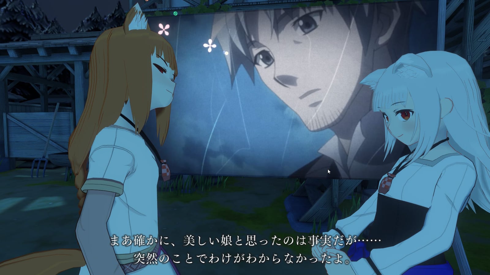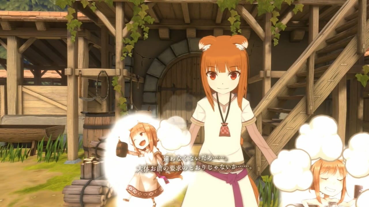 本編序盤は、ホロとローレンス(コンテツ内ではプレイヤーである主人公のため3Dモデルなし)での会話が行われます。