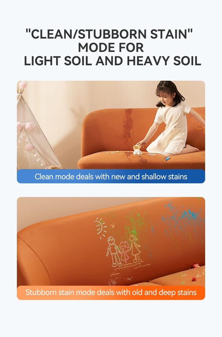 吸引力には二つのレベルがあります (最大12 Kpaまで) 。表面の汚れを落とすだけでなく、生地の奥深くまで浸透して汚れを落とし、徹底的に洗浄します。洗浄後は吸水と同時に素早く乾きます。
