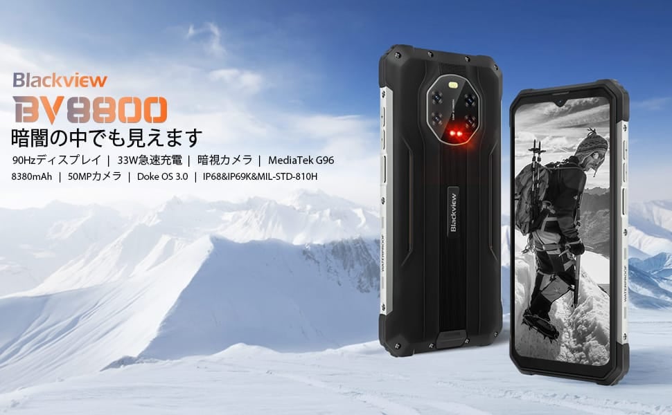 5000万画素のメインセンサー、2000万画素の赤外線暗視機能、800万画素の117°超広角カメラ、1600万画素の前面カメラなどのカメラシステムを搭載し、写真撮影に威力を発揮します。さらに、Blackviewのタフネススマホとして初めて、90 Hzの高リフレッシュレートの流体ディスプレイとDOKE OS 3.0を搭載し、最高の応答性、直感性、効率性を実現しています。高性能のMediaTek Helio G96 (8 GB RAM、128 GB ROM、8380 mAhバッテリ、33 Wの高速充電) を搭載したBlackview BV8800は、あらゆるものを次のレベルに引き上げます。