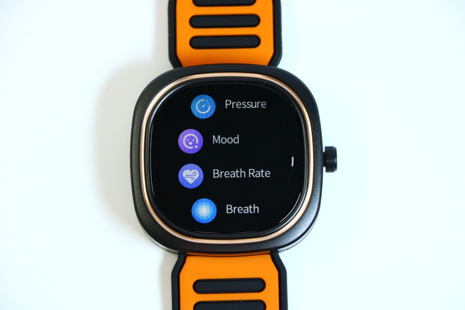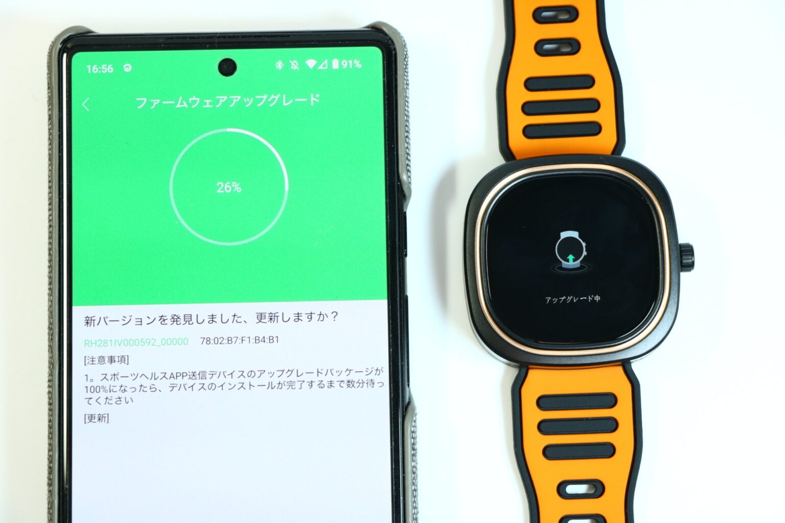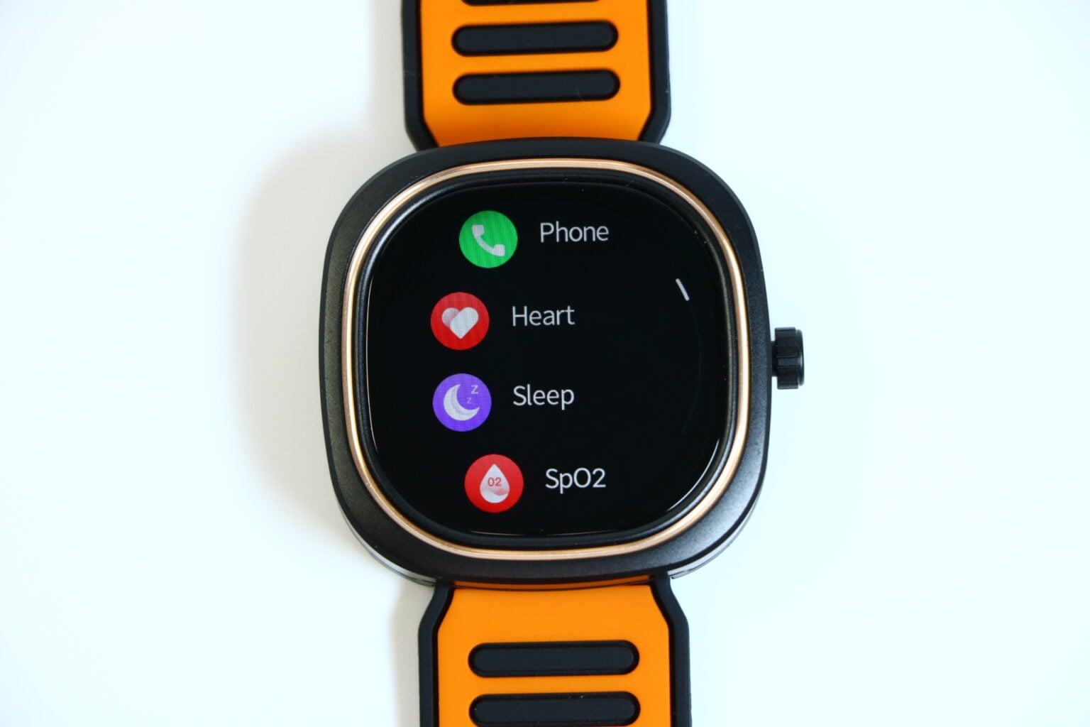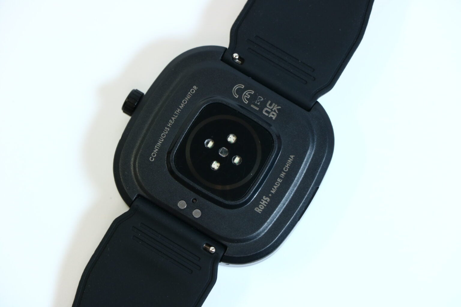 背面には、心拍数測定センサーとSpO2(血中酸素濃度)測定センサーが搭載されています。