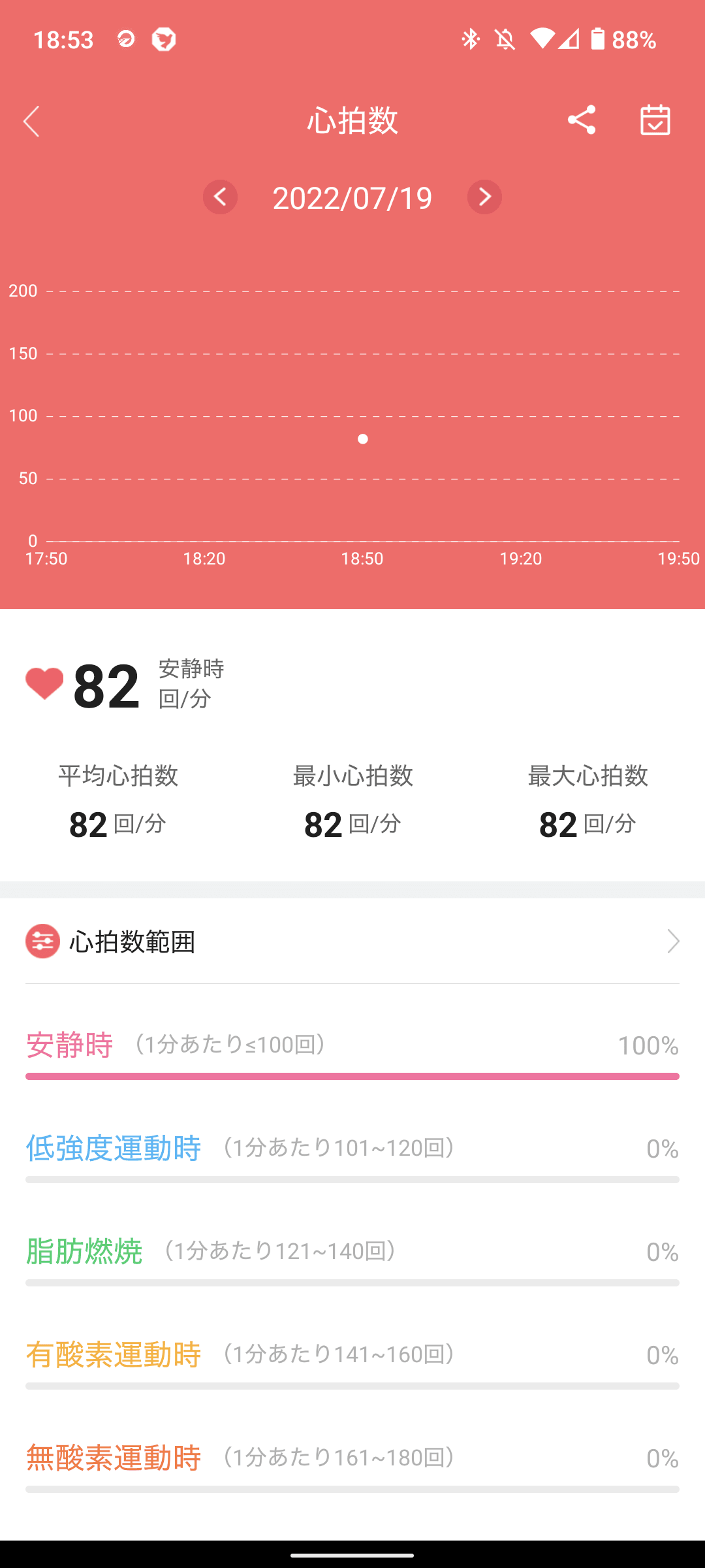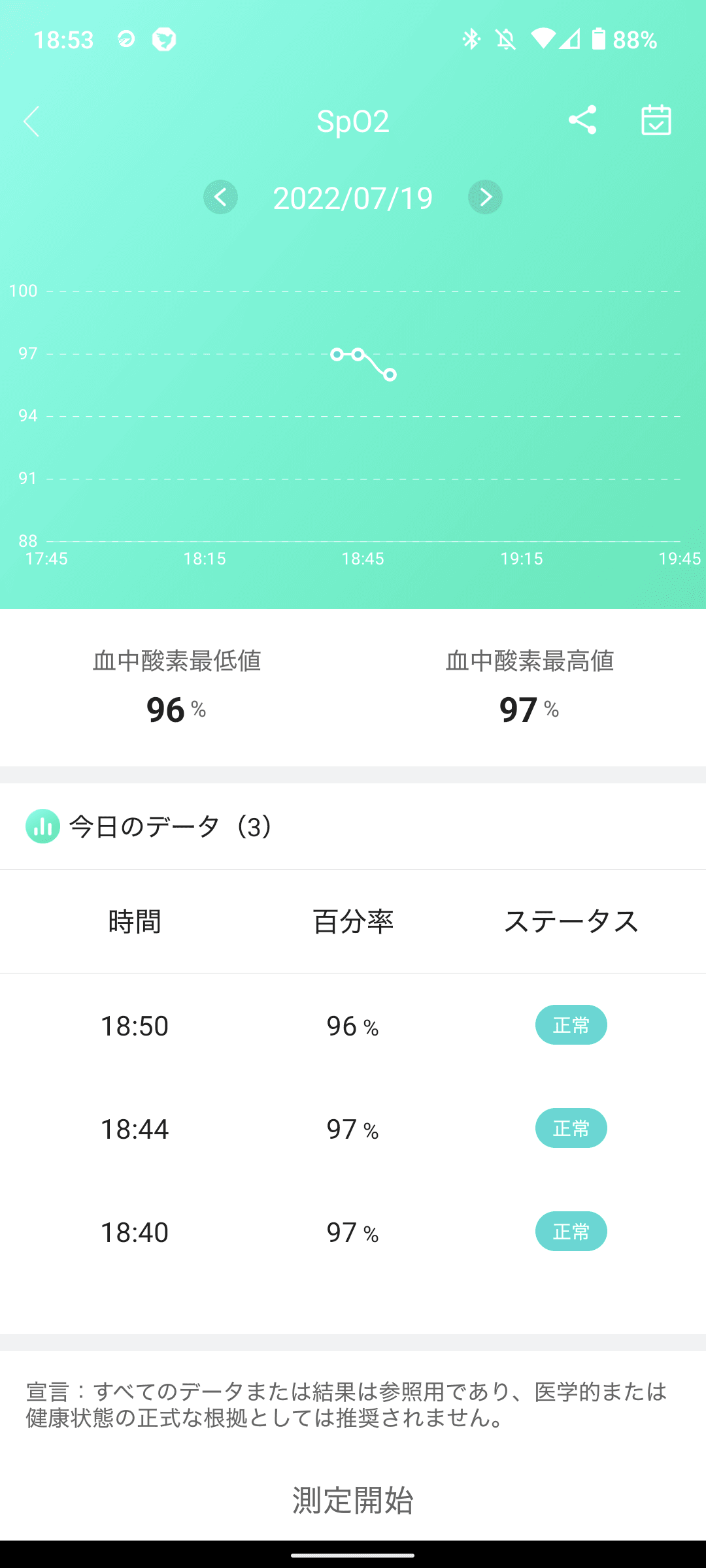 測定した心拍数とSpO2をグラフで表示できます。グラフ表記などシンプルな表示で見やすいです。