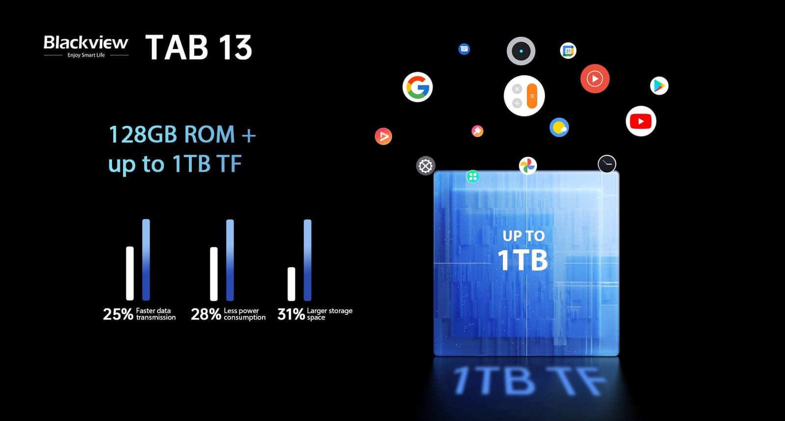 つまり、Blackview Tab 13のデジタルコンテンツをより多く保存できる容量がアップグレードされるだけでなく、マルチタスクの能力も大幅に改善されるということです。