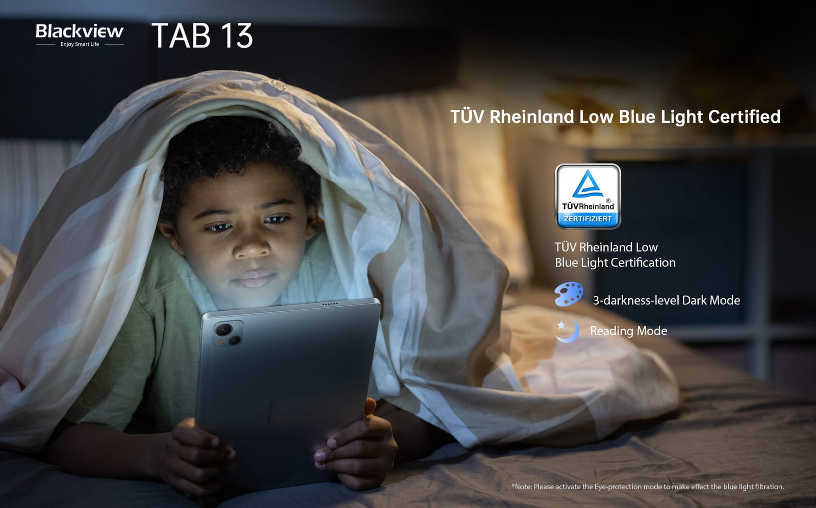 Blackview Tab 13の仕様は、Blackviewデバイスの中で初めてTÜV Rheinland Low Blue Light認証を受けた10.1インチFHD+スクリーンパネルが搭載されています。ダークモード、リーディングモード、アイプロテクションモードという3つのカスタマイズされたスクリーンモードと連動し、ブラックビュー・タブ13は低ブルーライトによる害からユーザーを保護し、効果的に目の疲れを軽減することができる。