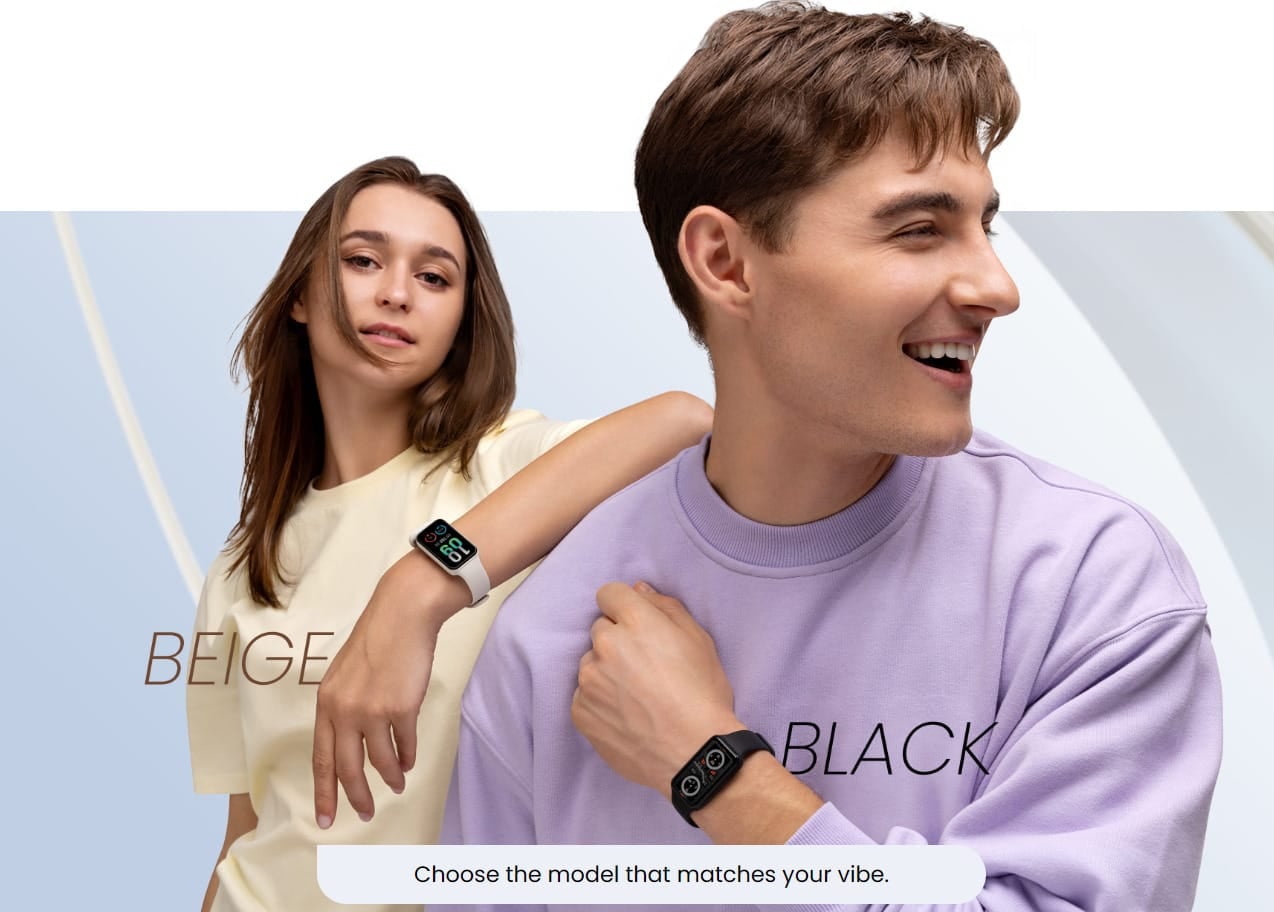 細長なXiaomi スマートバンドシリーズより横幅が広い画面を搭載しています。