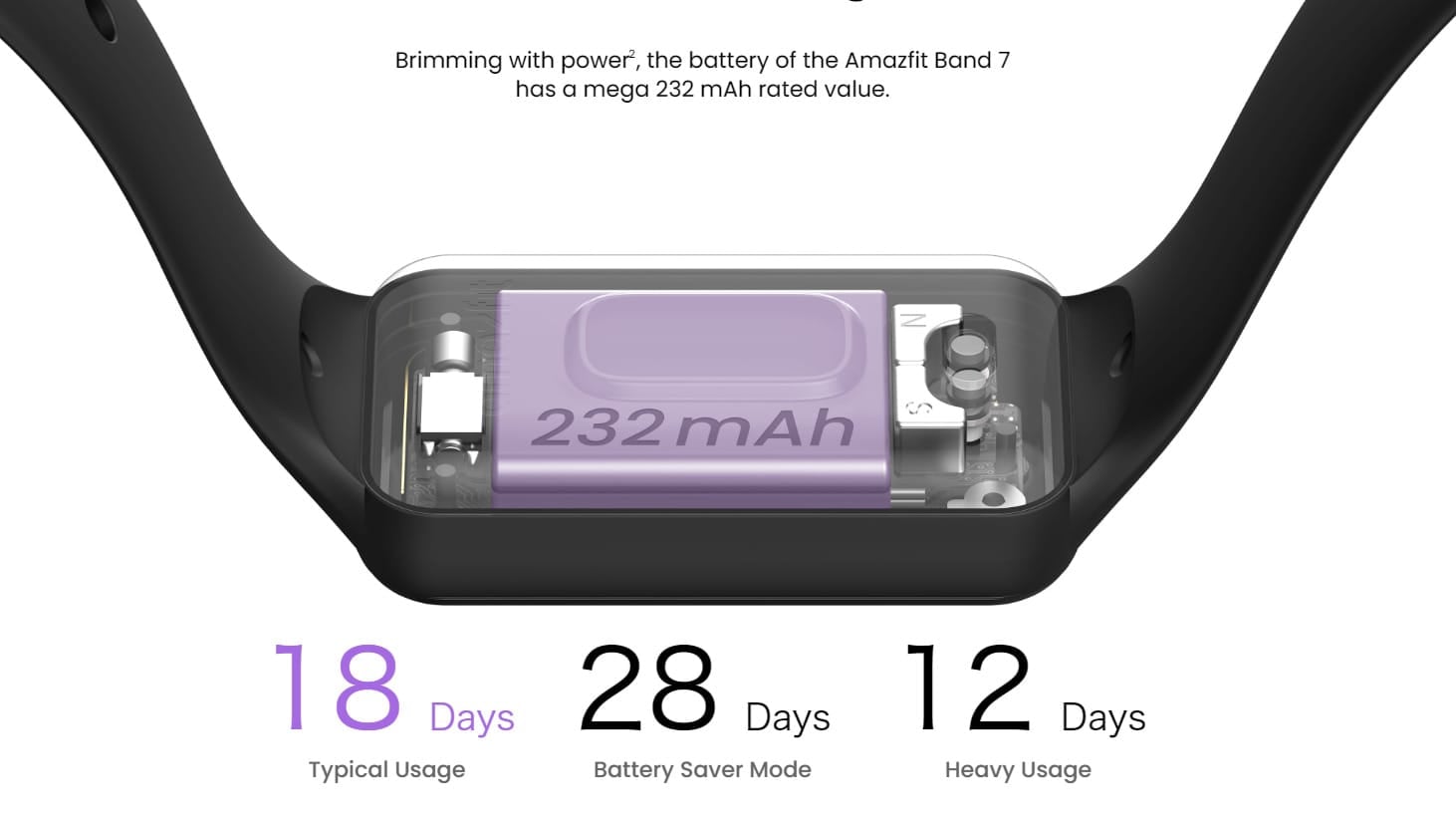 バッテリーは232mAhとスマートバンドとしては、多めの容量。