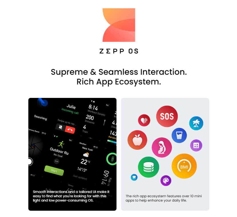 他のAmazfitシリーズ同様にOSにはZepp OSを採用しています。