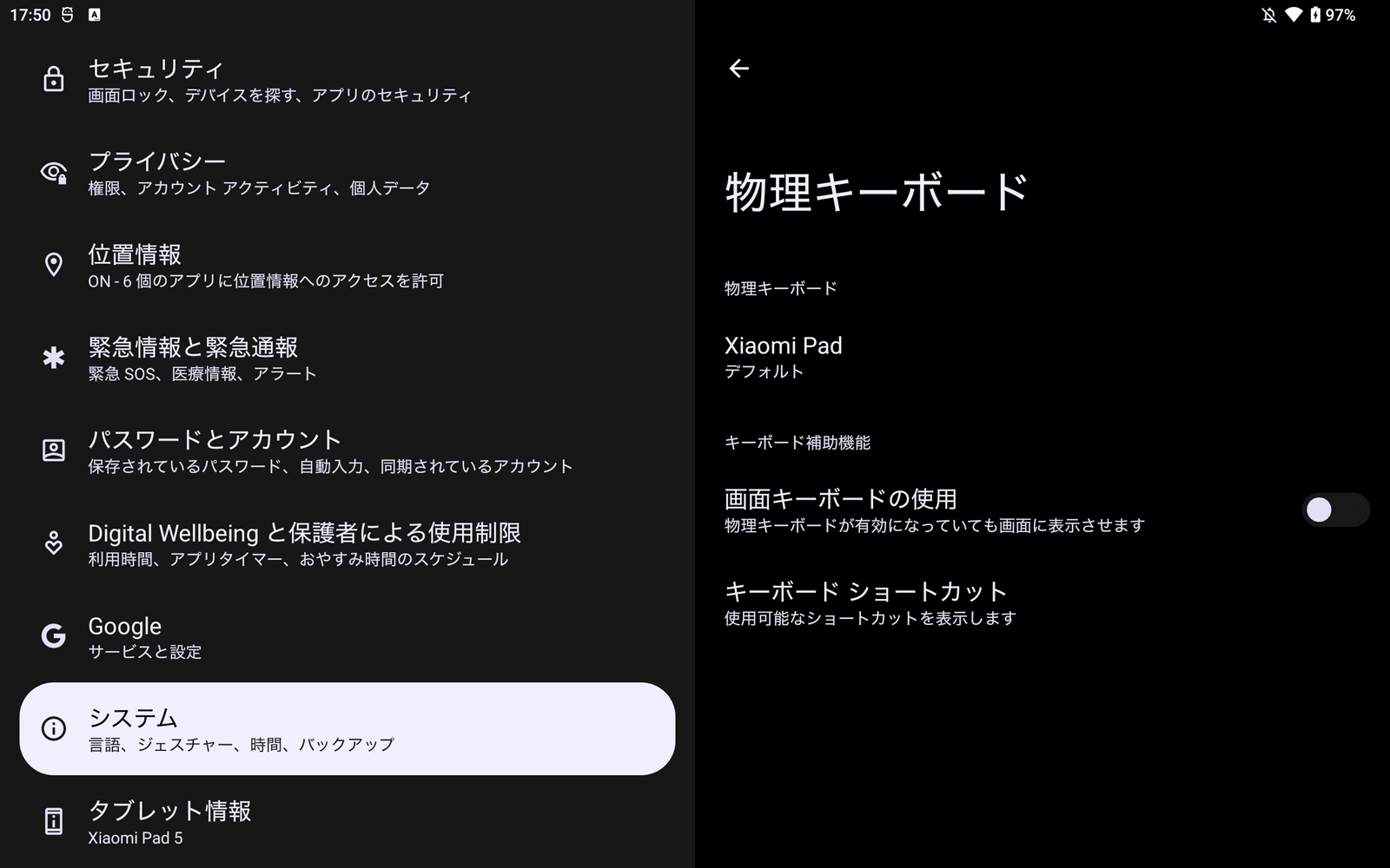 Xiaomi Pad 5のカーネルにドライバーが入っているため、新たにアプリをインストールしなくてもキーボードが利用できるようになっています。