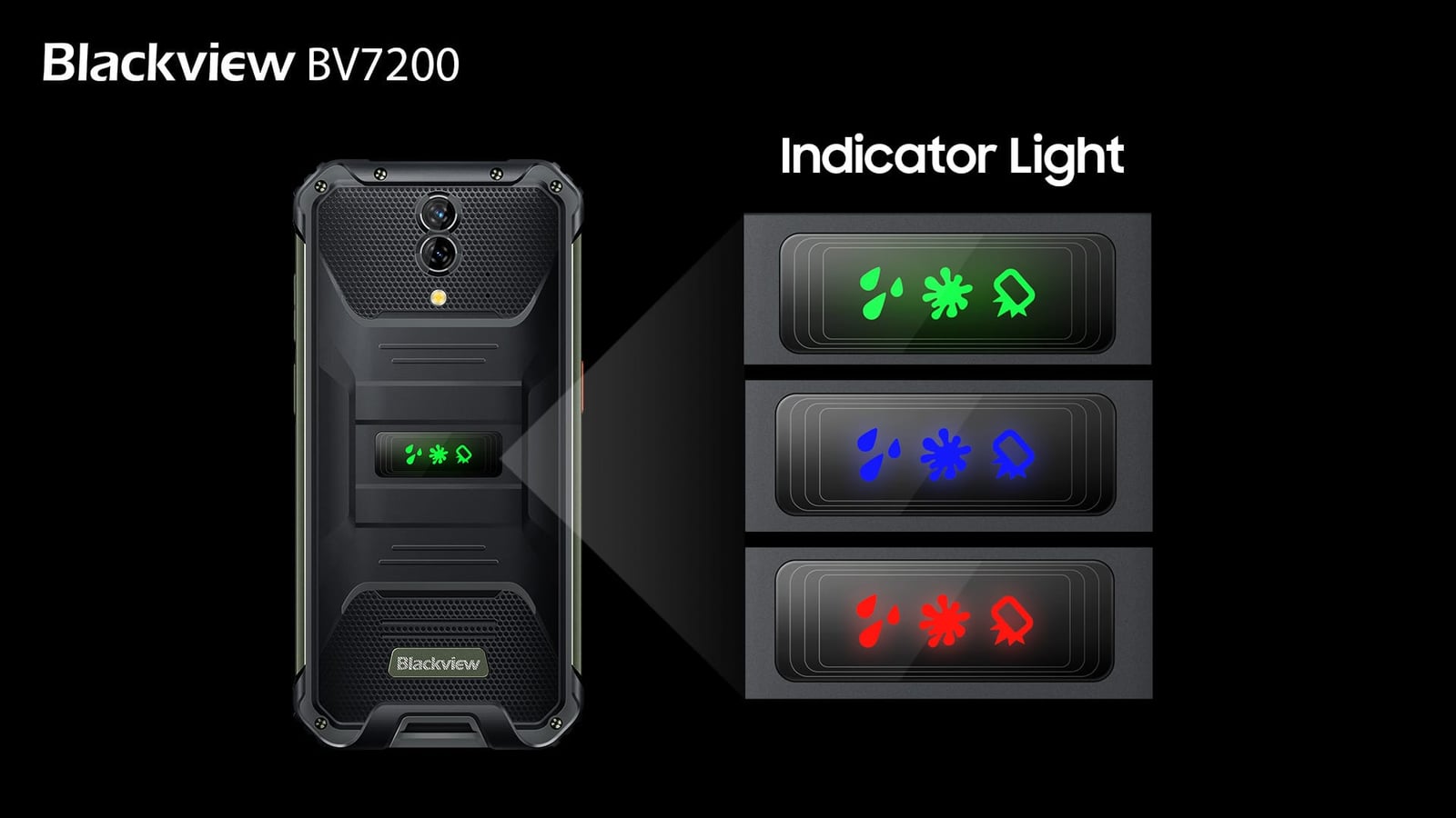 Blackview BV7200は、背面インジケータを搭載しており、リアルタイムで通知し、ユーザーの不安を解消し、ユーザーの期待に応えることができます。画面ロックを解除しなくても、通知や通話があれば、インジケータランプがすべてを教えてくれます。
