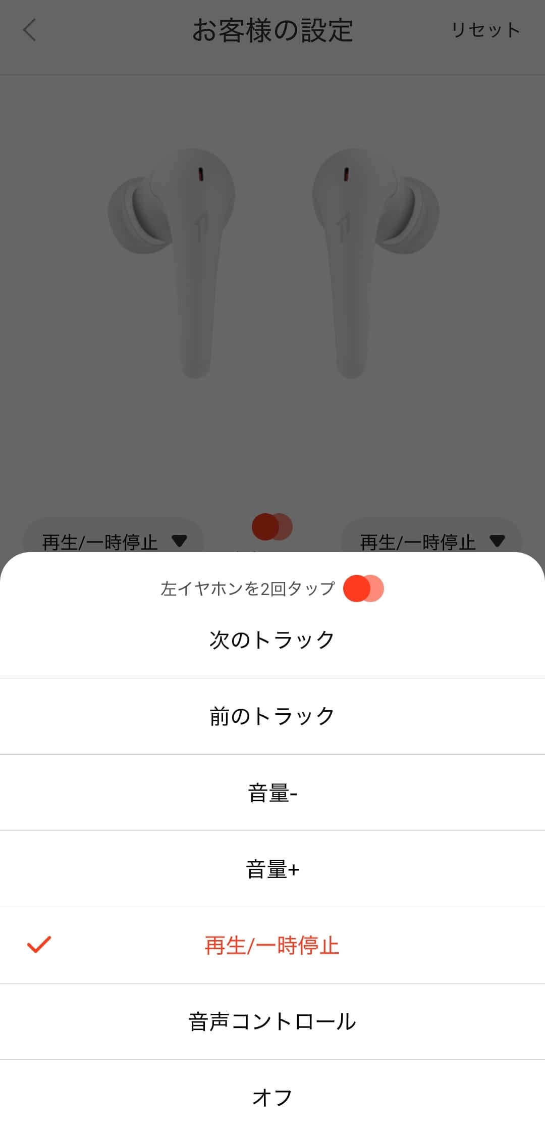 アプリの「空間オーディオ」トグルをオンにすると有効化できます。記事の執筆時点では、イヤホンのジェスチャー割り当て設定である「お客様の設定」に空間オーディオのオンオフ設定がないので、必然的にアプリ内からのみしか変更できません。