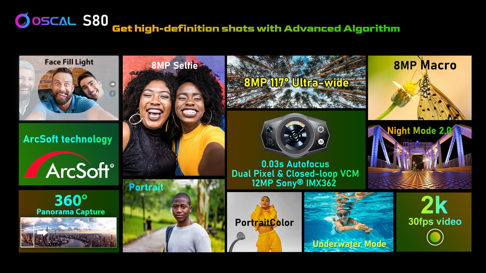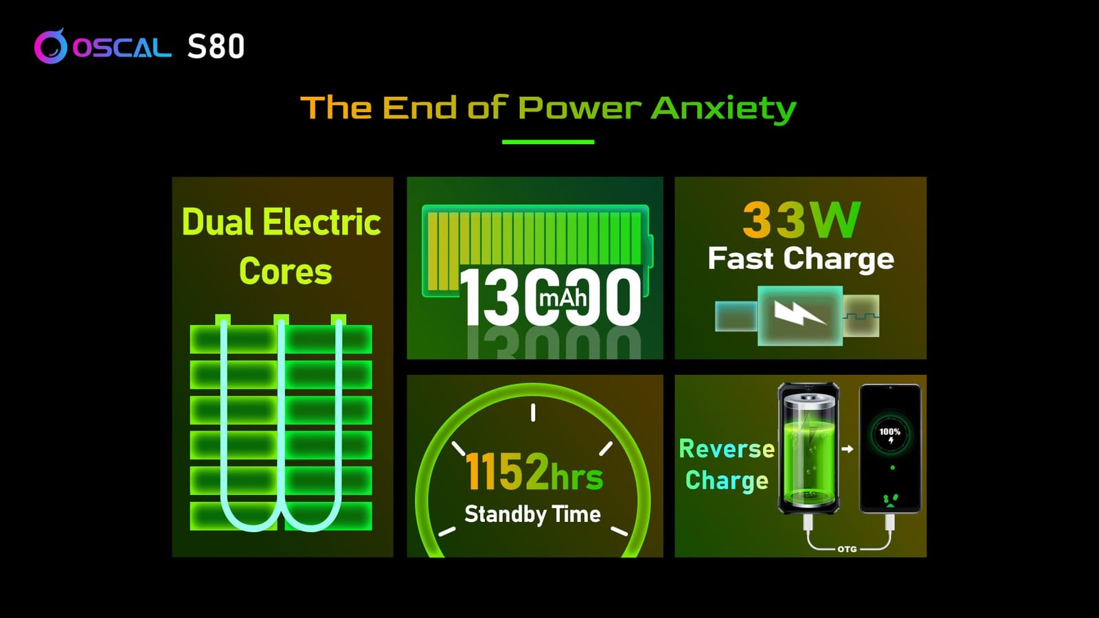 Oscal S80は、IP68とIP69Kの防水性能、MIL-STD-810G、Sony 12MP IMX362カメラ、6GB RAM+最大4GB拡張、128GB ROM+1TB TF拡張、13,000mAhの超大型バッテリーを搭載。