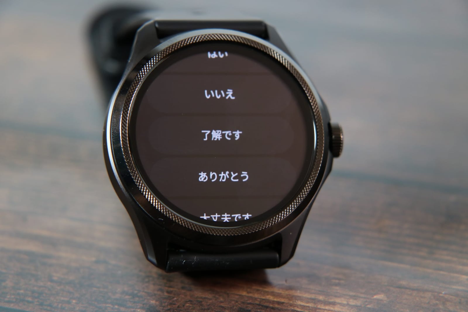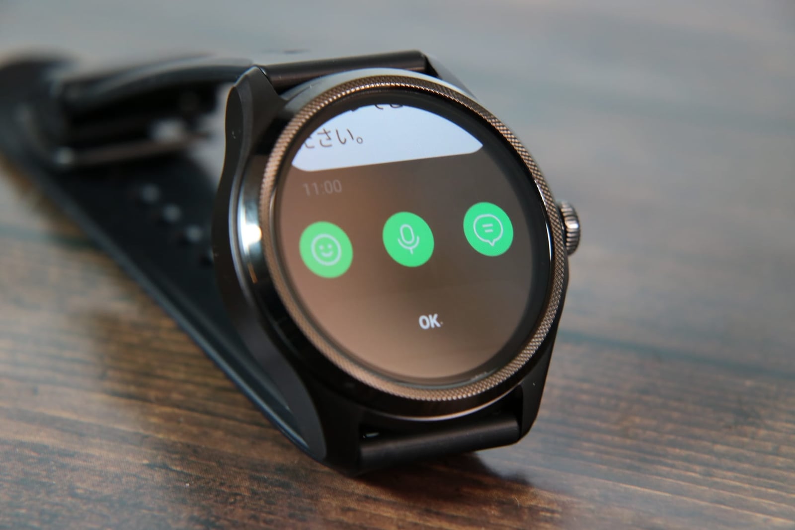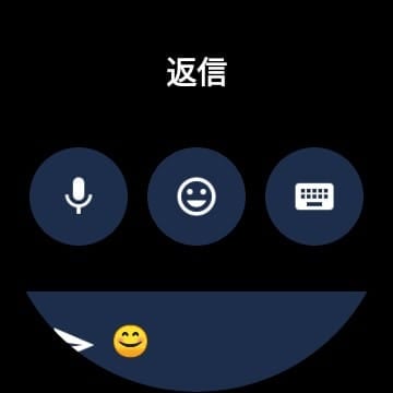画像のように、スマートウォッチ内でアプリ通知に対して返信ボタンが表示されます。