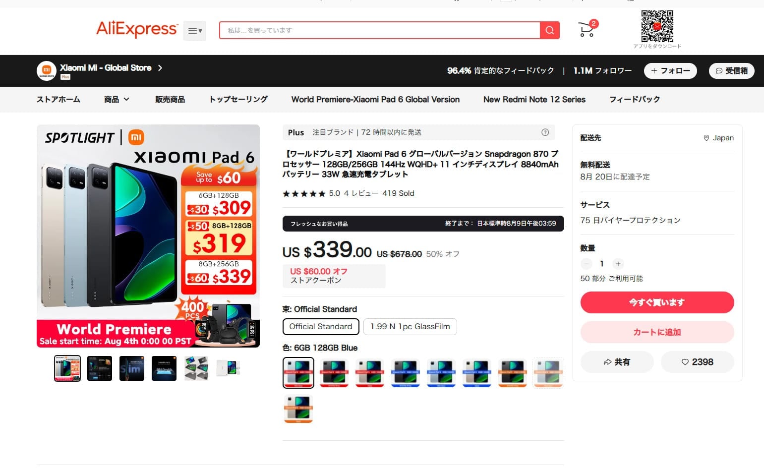 Xiaomi Pad 6のグローバル版がセール価格に。AliExpressにて、お得に購入できます!