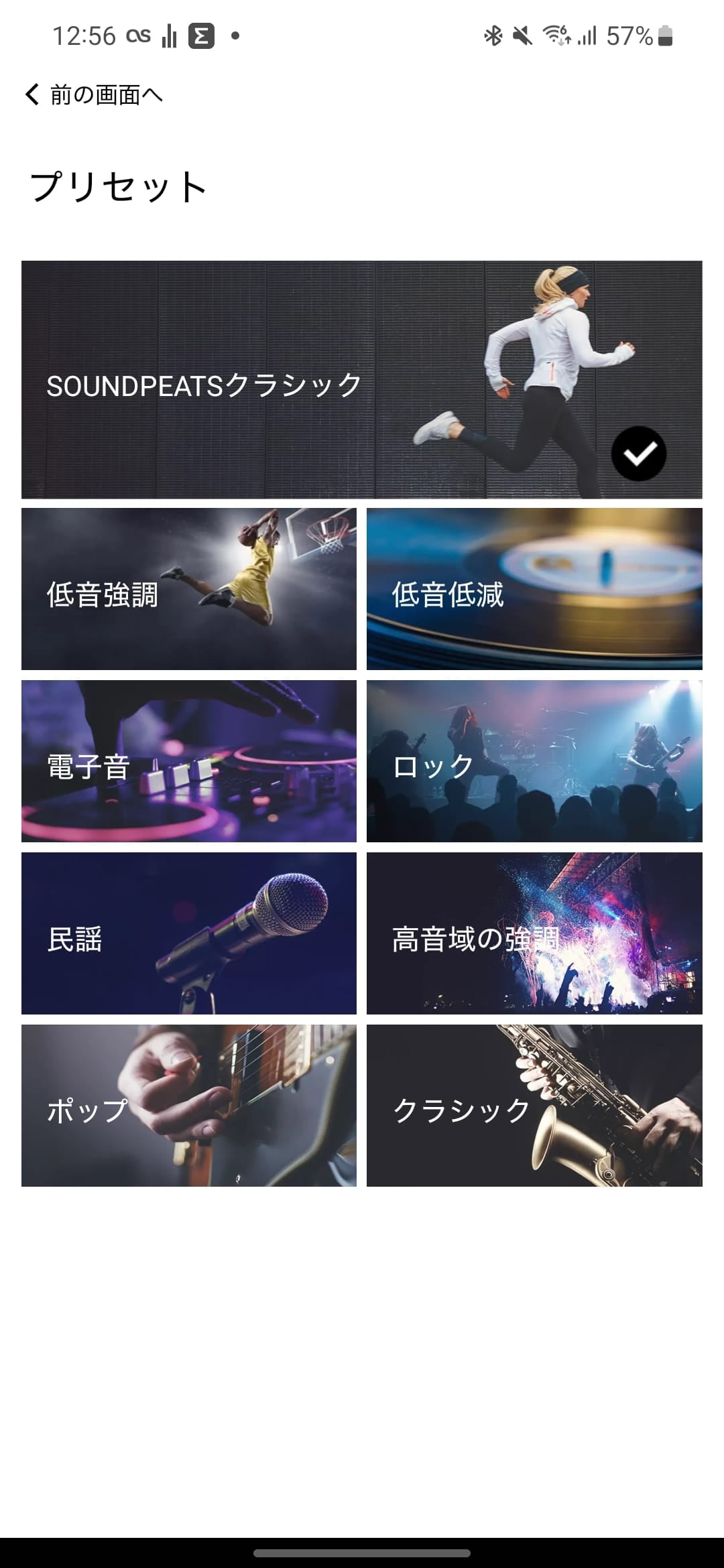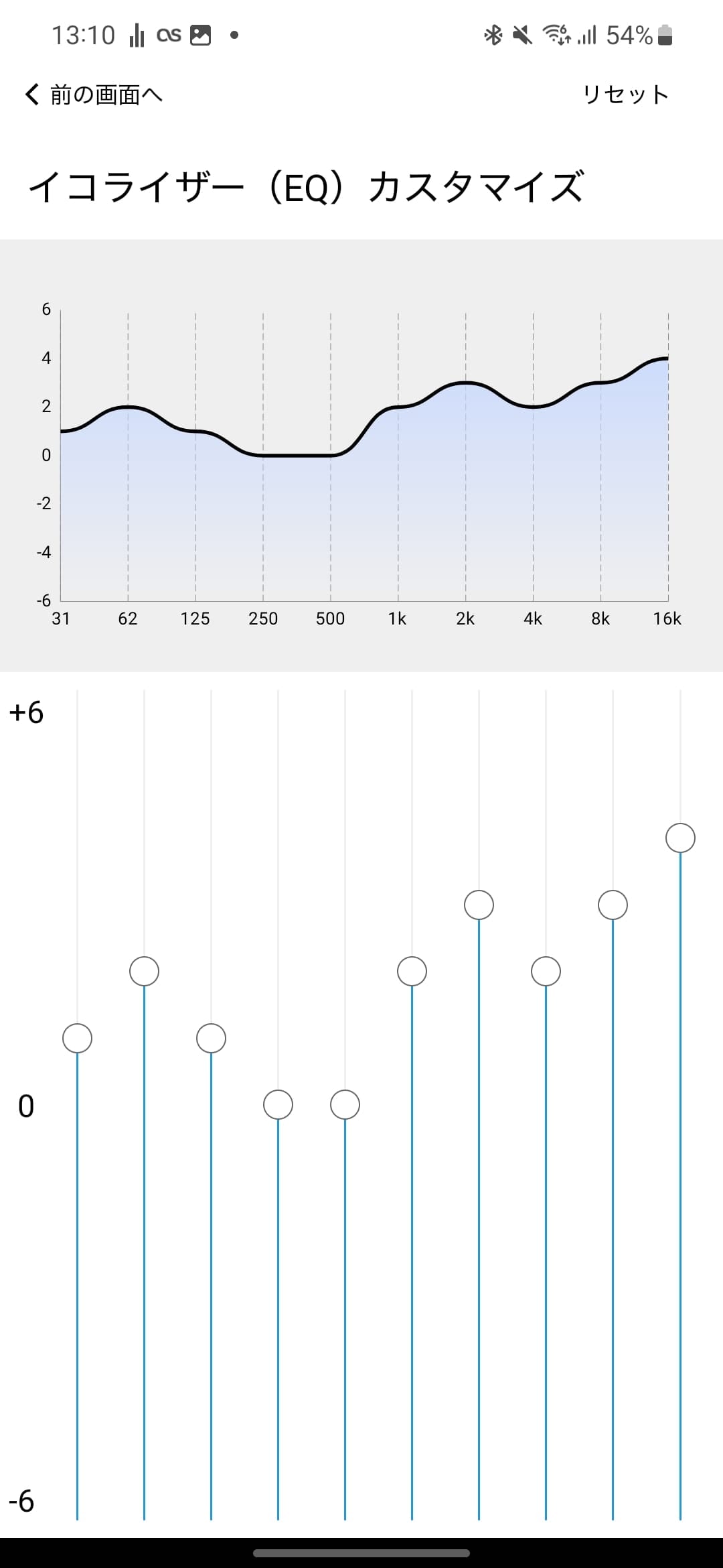 イコライザーの設定は2通りの方法があって、プリセットから選択する方法と、音域のスライダーを調整する方法があります。