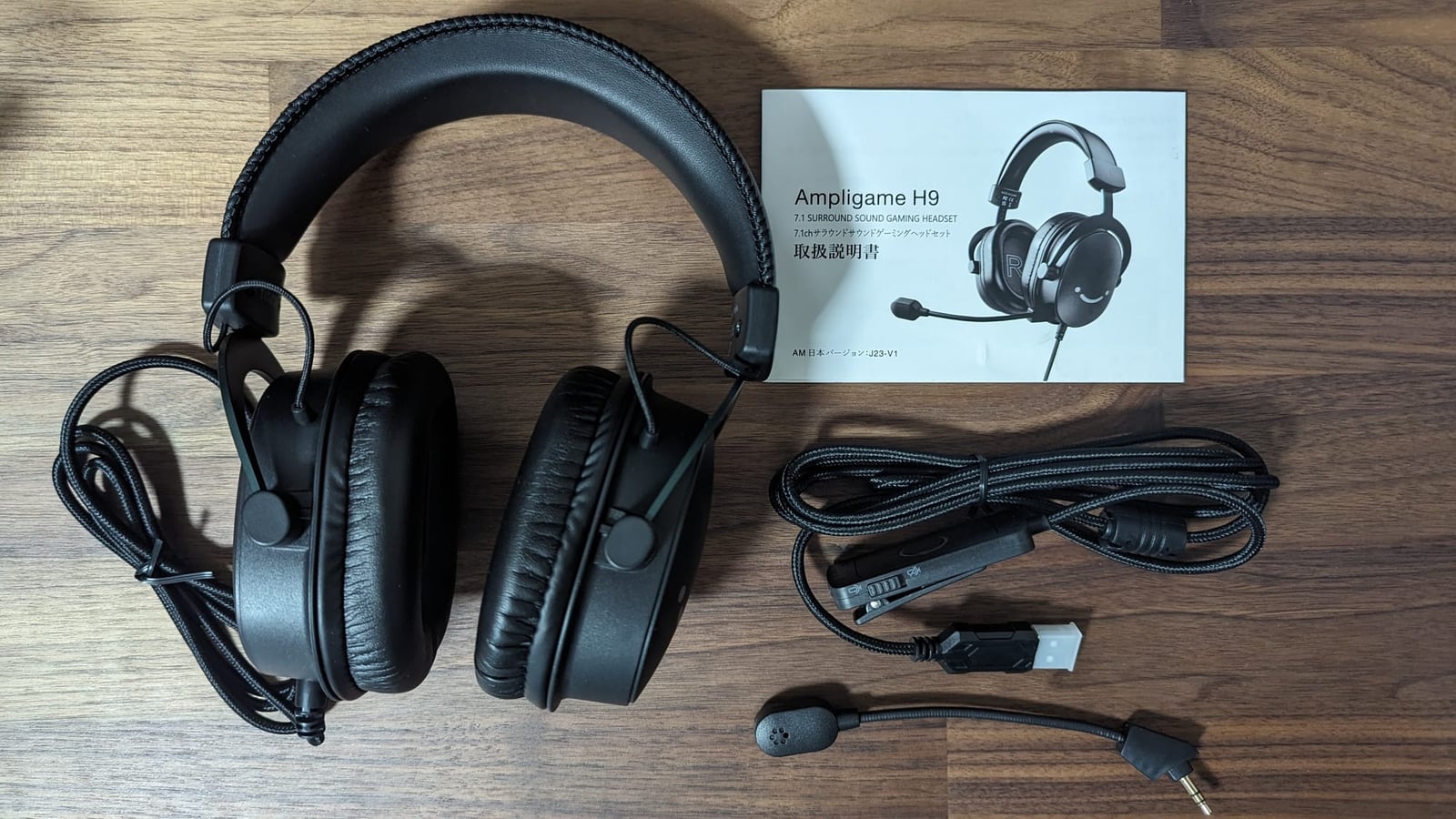 ヘッドセット本体とオーディオコントロールパッド、着脱式の全指向性マイク、そして説明書が付属していました。