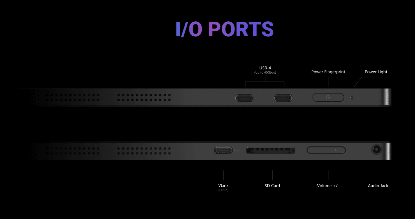VLimkと書かれている、USB-Cポートは、ゲーム機や他のPCを接続するとモバイルモニターとして動作します。