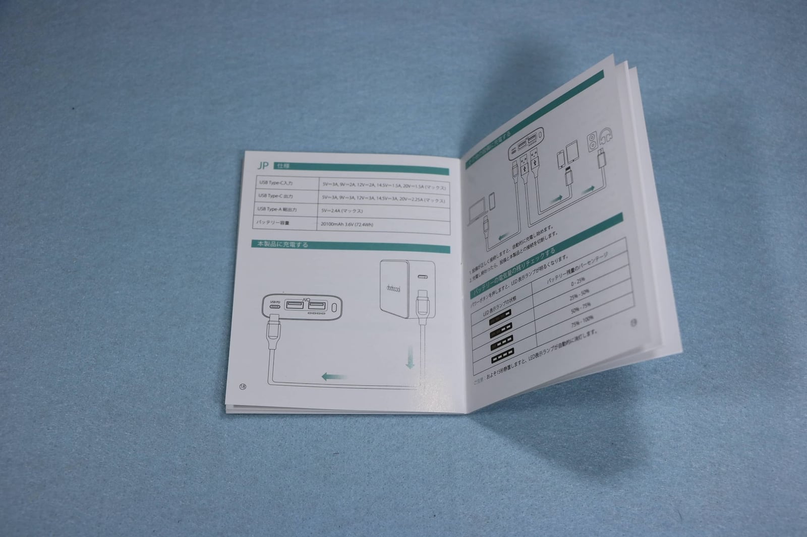 - 20000mAhのモバイルバッテリー本体