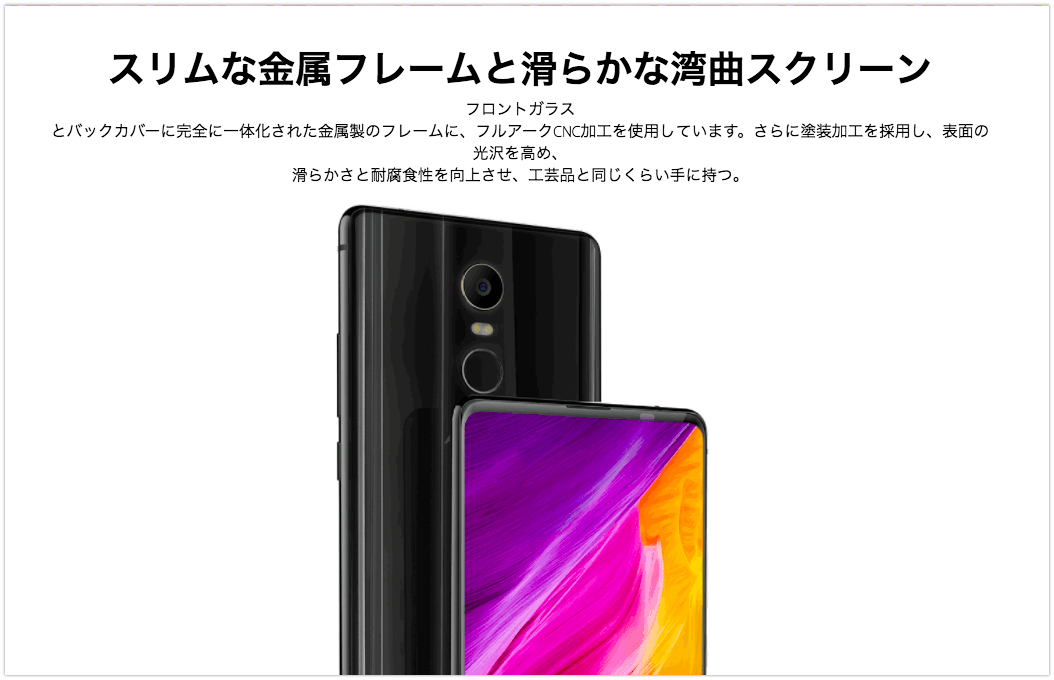 「安かろう悪かろう」のそっくりではなく、結構使えるそっくりなのでMi Mix2のデザインのような、3面狭額縁が好きな方は必見です。