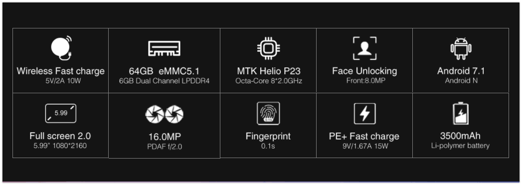CPU: MTK6763 Helio P23 Octa-Core 8 * 2.0GHz