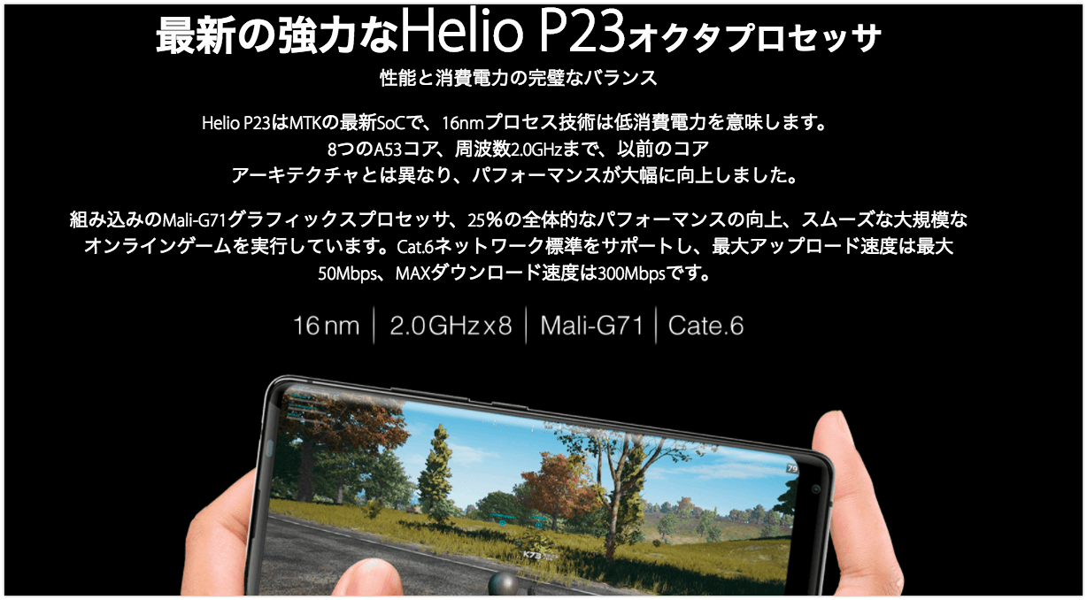 格安スマホ御用達のHelio P23を搭載。
