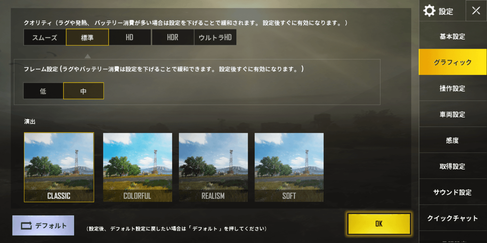 この画質設定ならほぼカクつく、結構普通に遊ぶことができます。