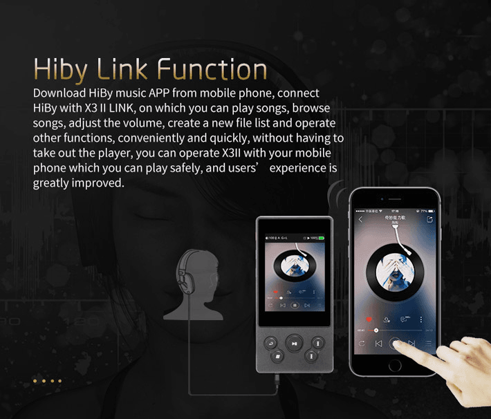 HiBy(海貝音楽)というアプリで、Bluetooth経由で音楽プレイヤーの曲操作が可能です。アプリは全て日本語化されています。HiBy Link機能はアプリ内部でプレイリスト作成や本体の音量調整、選曲などが出来るスグレモノです。