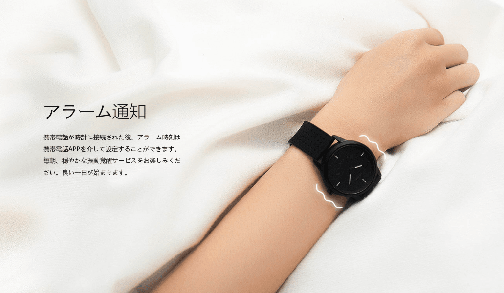 電話やアプリの通知だけでなくアラームなども通知可能です。文字表示が出来ないのでなんの通知かはスマホを確認するまで分からないようです。