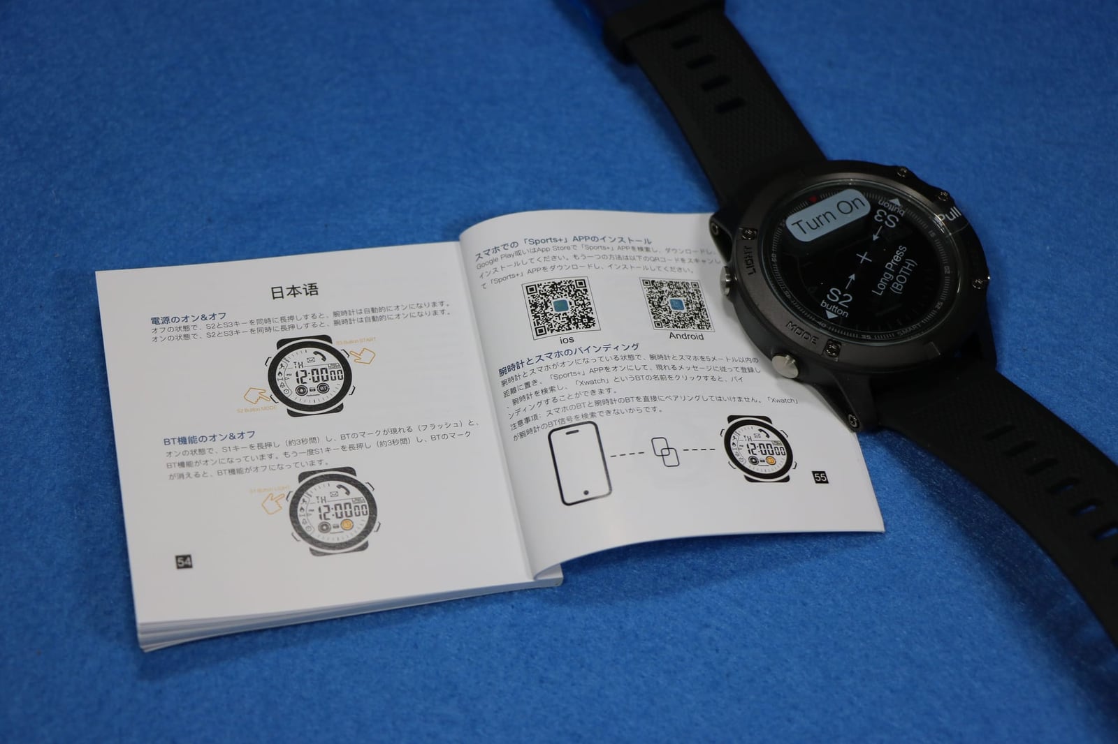 一見するとただのデジタル腕時計ですが、スマホと連携が可能。面倒な時計合わせはスマホの時計で合わせてくれます。AndroidでもiOSでも「Sports+ 」というアプリで連携することが可能です。