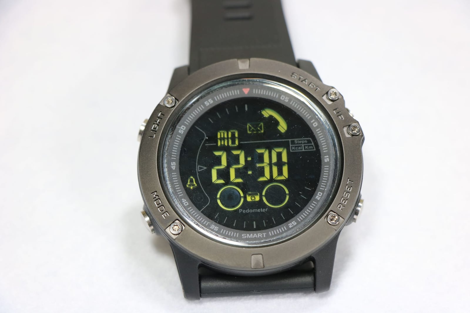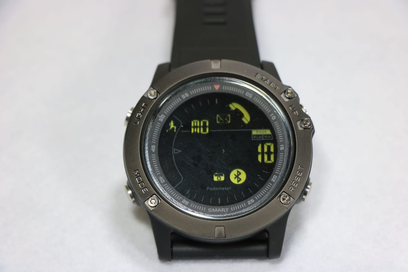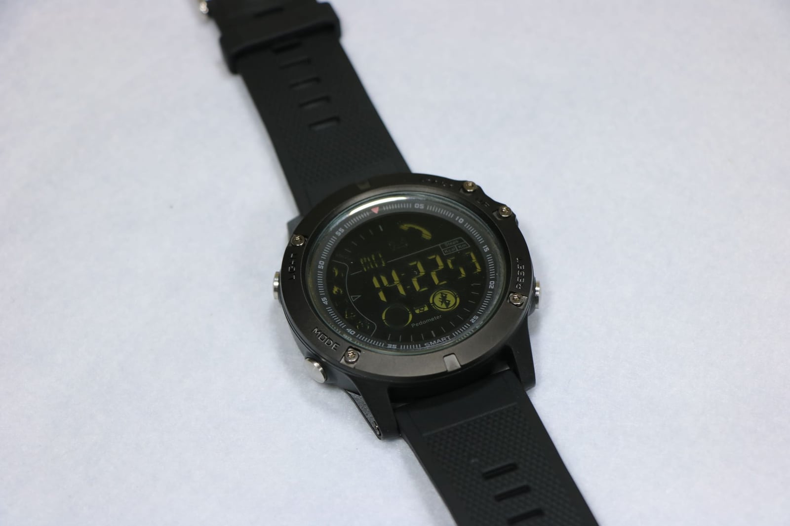 機能は、ブザーによるスマホ通知機能、歩数計、カロリー測定、距離表示、アラーム、ストップウォッチ、リモートシャッターです。