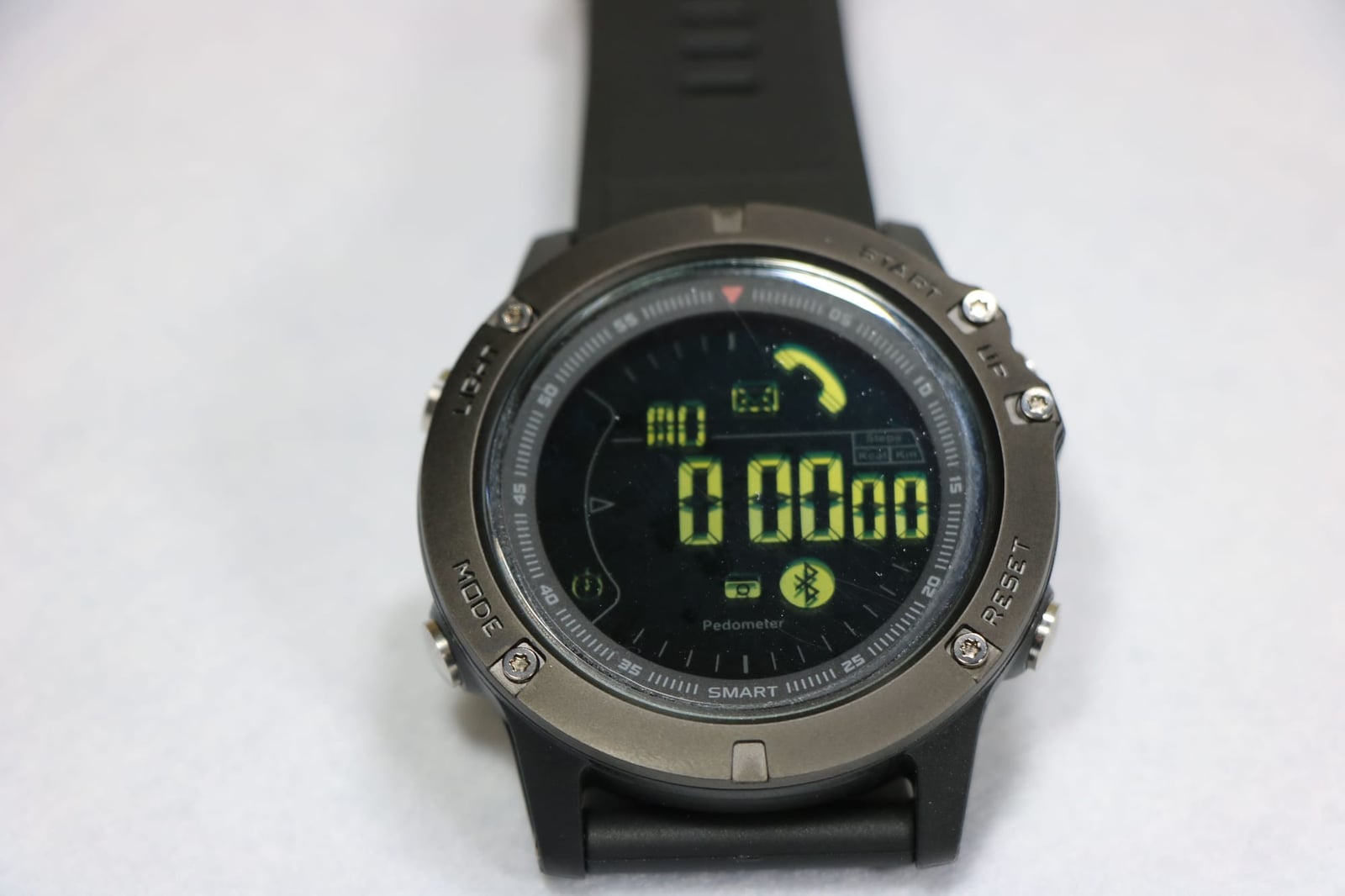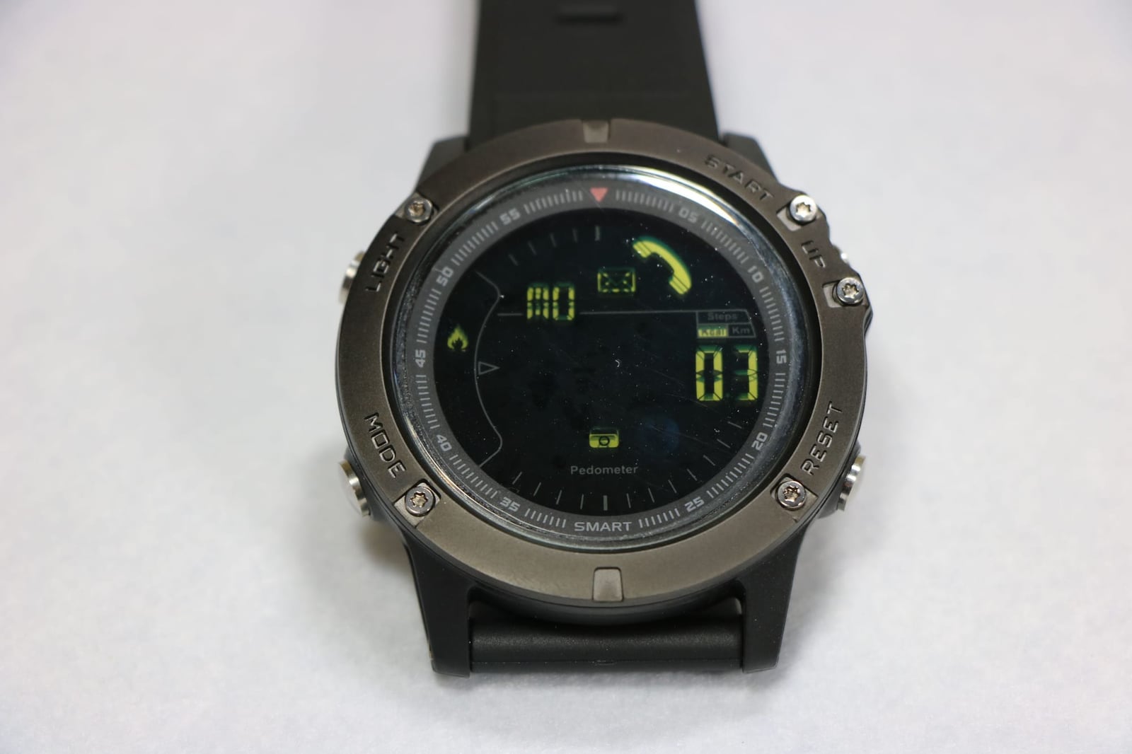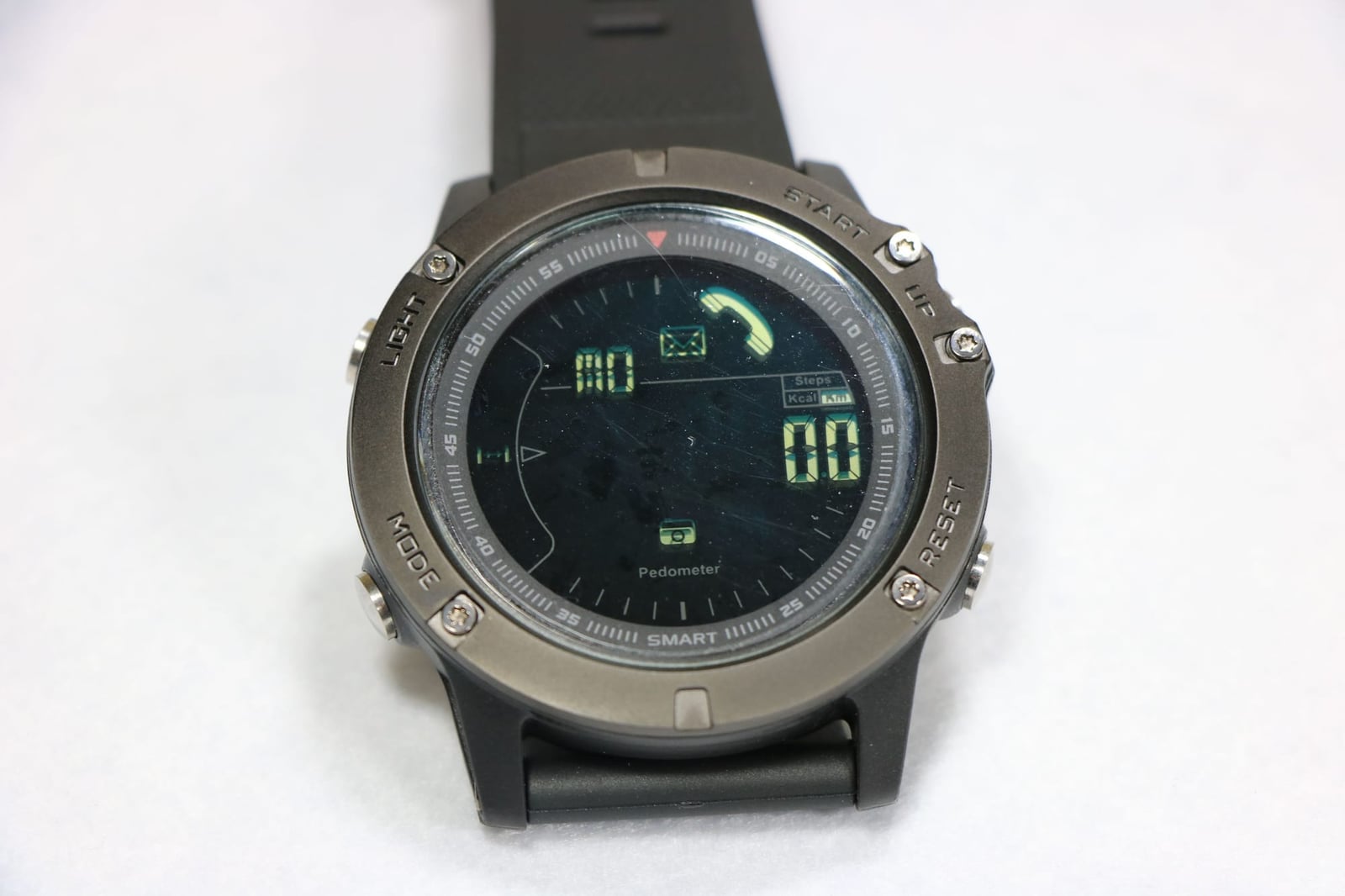 機能は、ブザーによるスマホ通知機能、歩数計、カロリー測定、距離表示、アラーム、ストップウォッチ、リモートシャッターです。