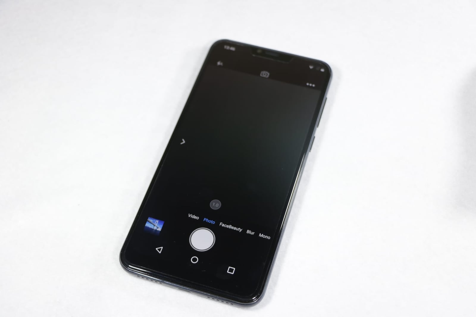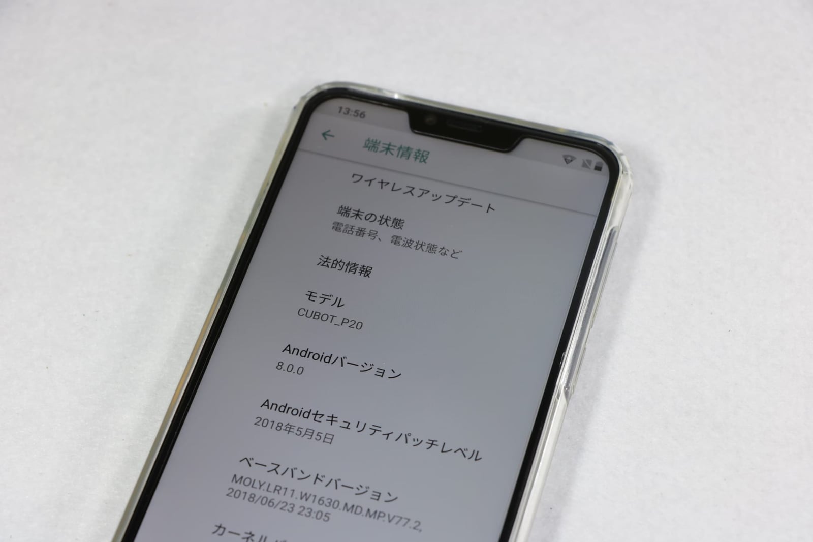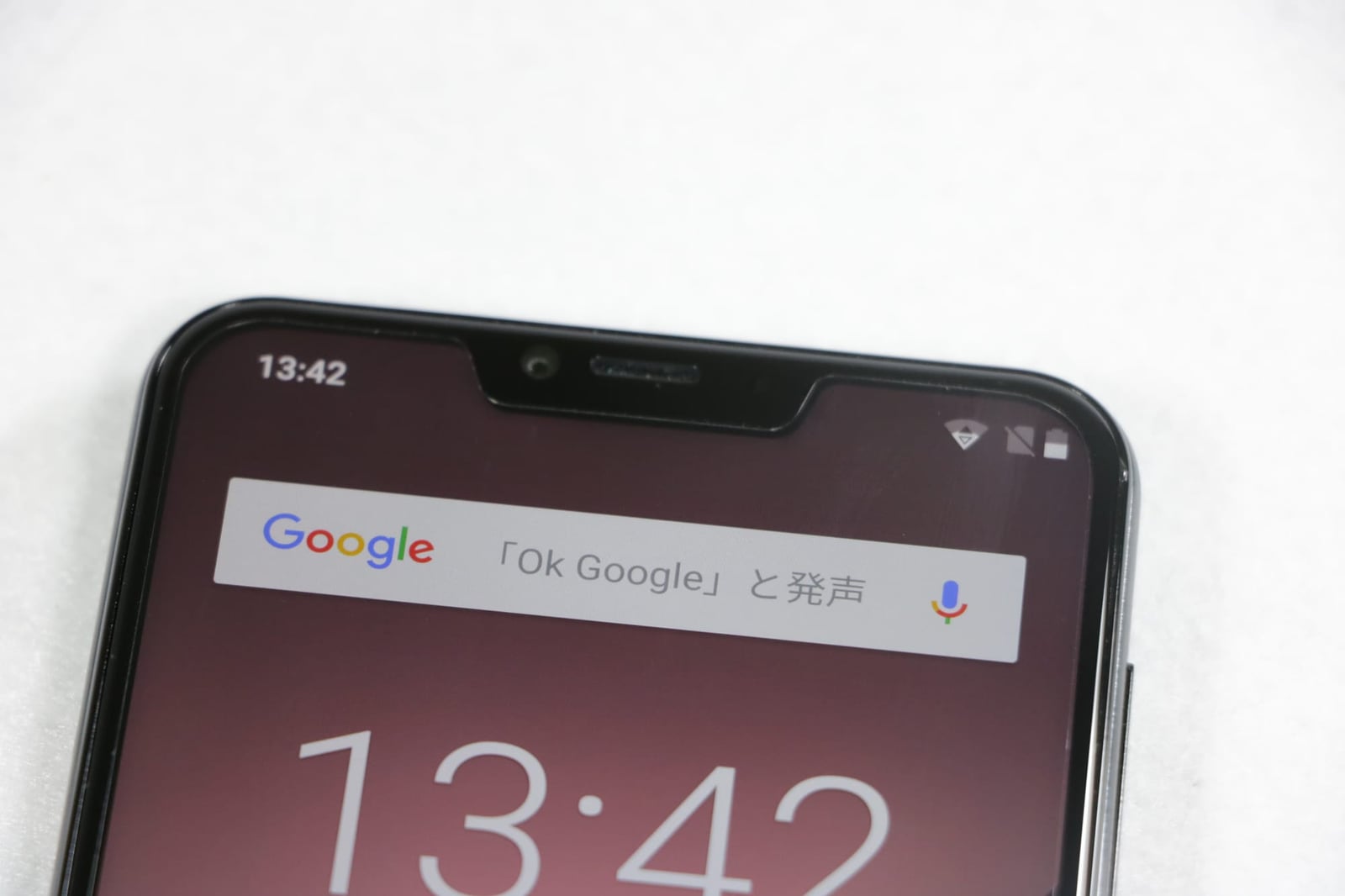 このスマホ最大の特徴であるノッチはiPhoneXに比べると小さく、Huawei P20くらいの大きさになっています。ベゼルも公式サイトの画像ほどではないですが、かなり細いのでかなり好感持てます。