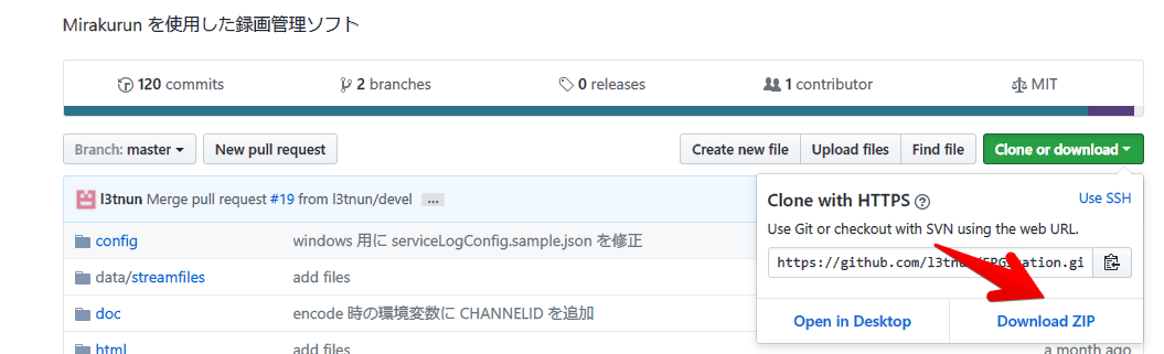 GithubのEPGStationのページからダウンロードします。