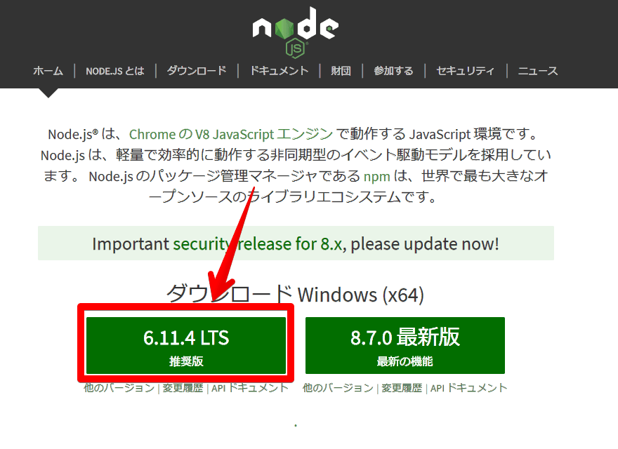 Node.jsのインストールは以上です。