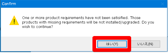 警告でますが「はい」でいいです。
