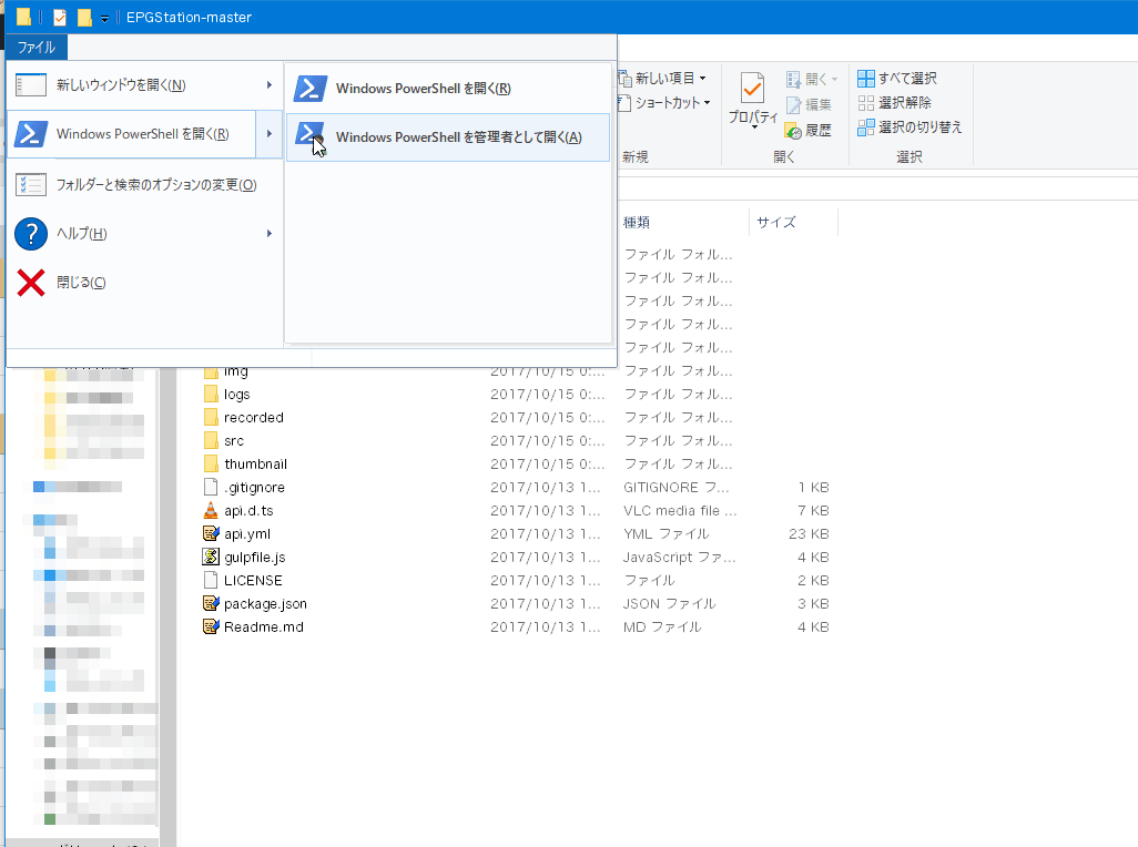 続いてEPGStationのインストールフォルダで