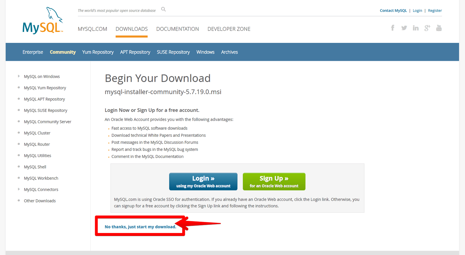 ↓「登録してね」ってページに飛びますが「No thanks, just start my download」でスキップできます。