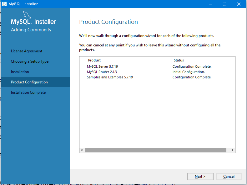 ↓インストールが完了すると設定ウィザードが始まります