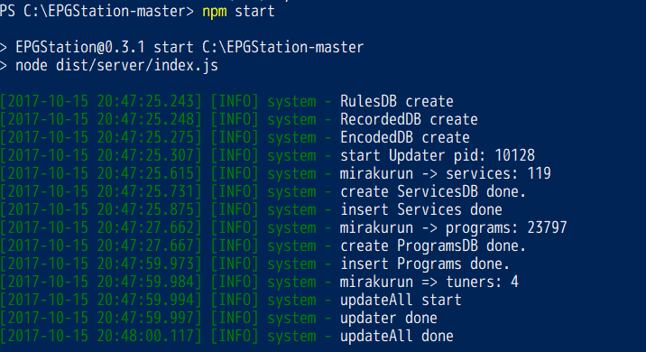 ※MirakurunのWindowsでインストールする方法は他のサイトでも結構解説されているのでEPGStationのみ導入方法を説明します。