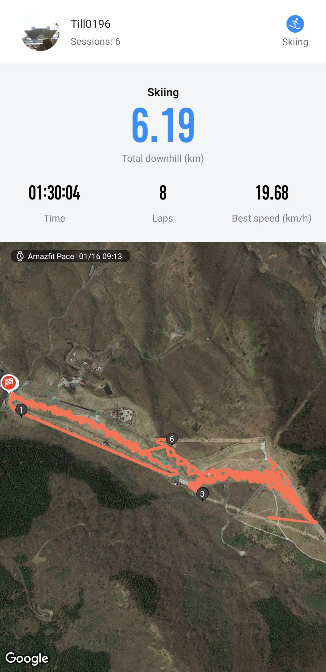 他にも、スピードを出す機能はAmazfitアプリからラップ毎のスピードまで割り出してくれるので、スキーガチ勢な方にも便利かもしれません。