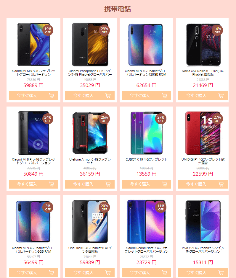 話題のRedmi Note 7やPocophone F1などもお安くなってます。