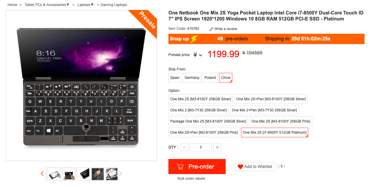 Geekbuyingではクーポン利用で8GB/512GBモデルが1099.99ドルで購入出来ます。