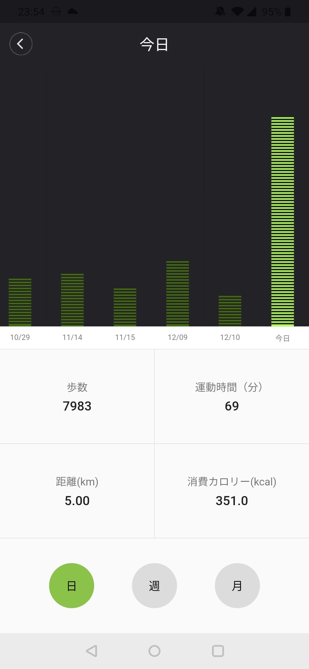 Mi Fitの睡眠記録みたいな「〇〇%の人より走っています」みたいなのを期待していましたが、そういった機能はなく、これと言って面白い機能はありませんでした。