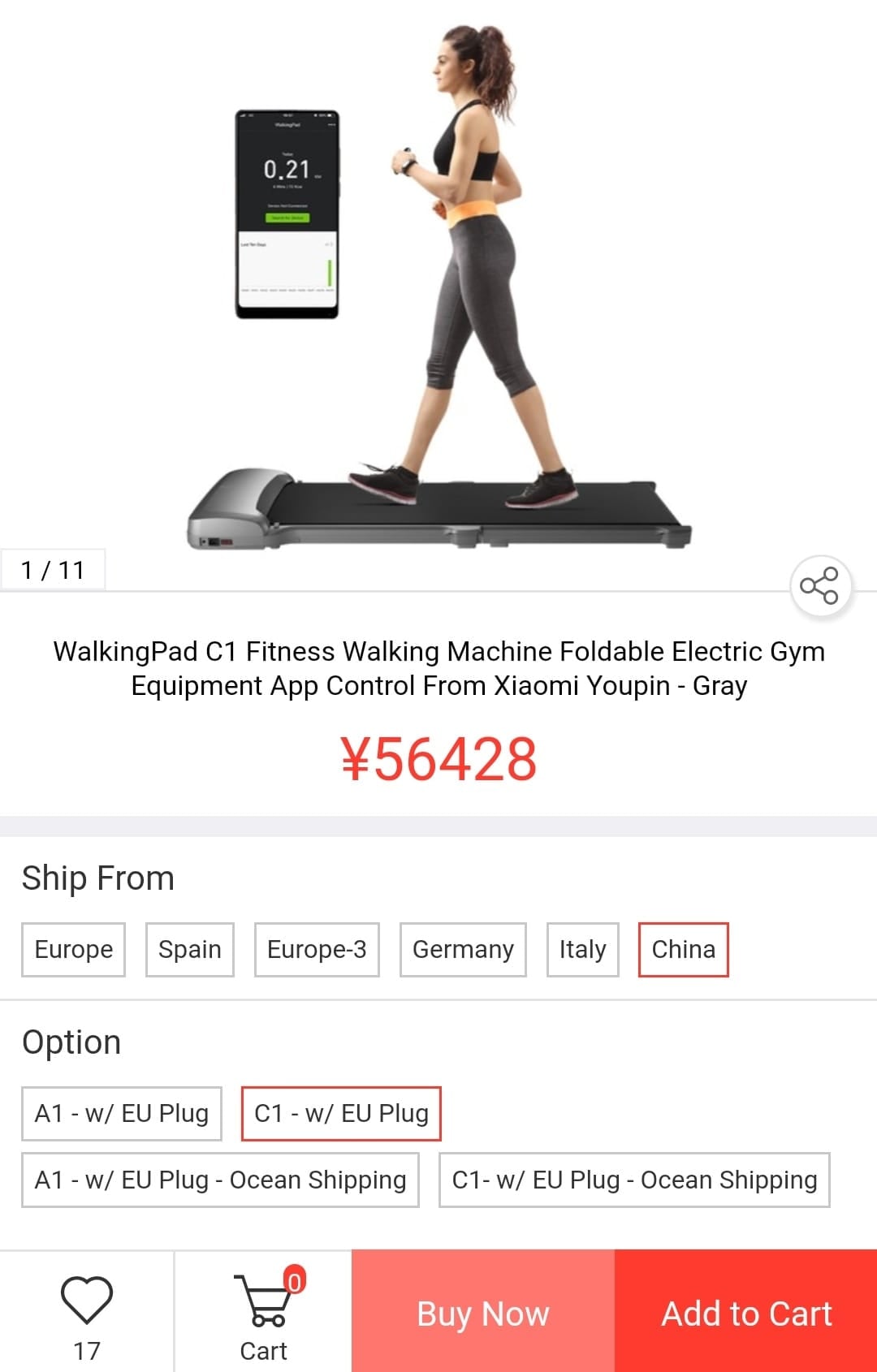 コンセントや電圧対応の少ないの中国専売モデル版の「Walkingpad C1」が何故かGeekbuyingで日本へ配送可能になっていますが、プラグタイプは違いますし、別途変圧器などの準備が必要になります。これを揃えてたら国内正規品が変えるので、このウォーキングマシンにおいて海外通販は使わない方がいいです。