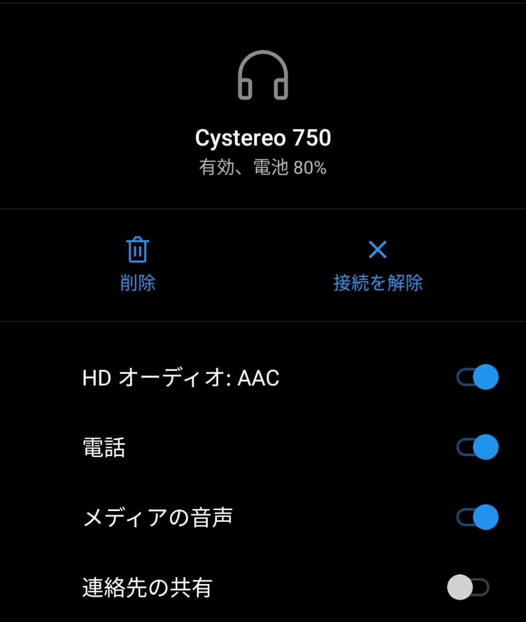 Bluetooth接続で接続すると、HDオーディオとして、AACが利用できます。