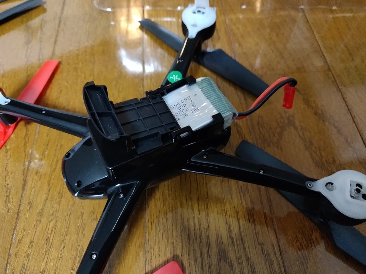 このプロペラガードのおかげで、壁にぶつかったりした際に、ほぼ損傷なく動きます。