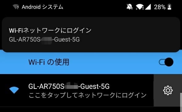 このモードをオンにすると↓SSIDに接続後ログインページに飛ばされます。