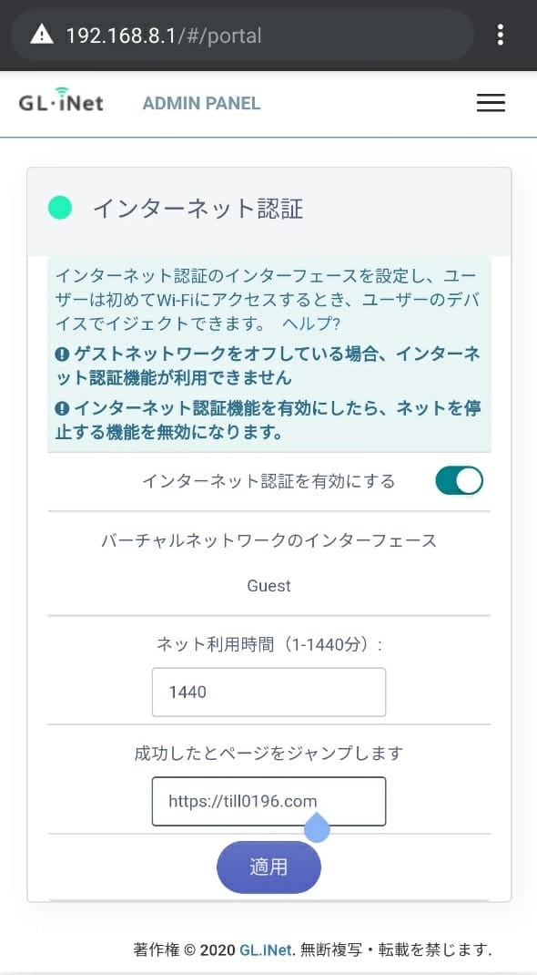 公衆Wi-Fiなどによくあるログインページの設定です。英語では「キャプティブポータル」、内部の設定画面では「インターネット認証」となっています。