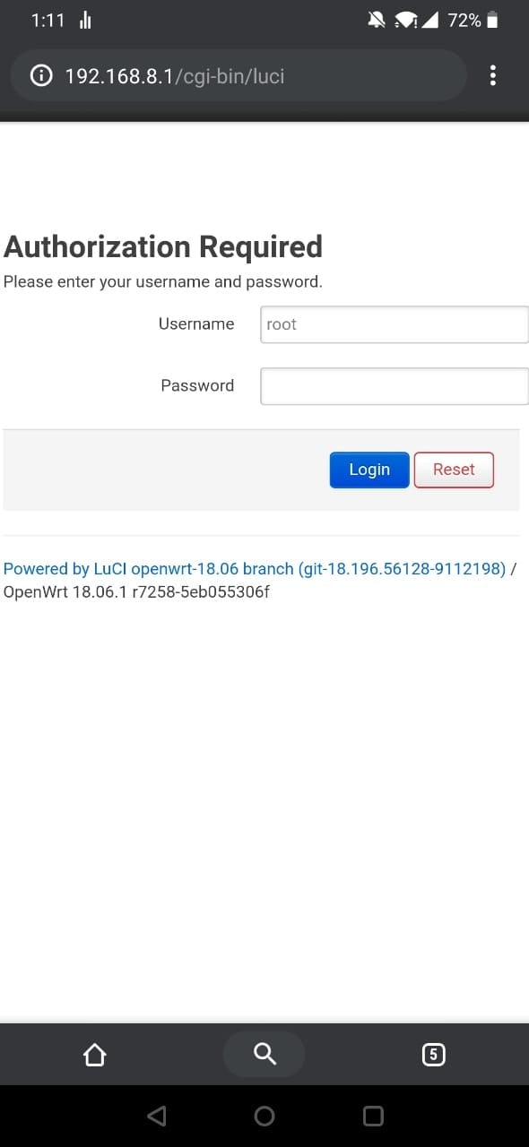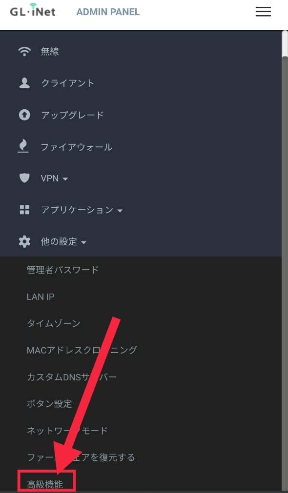 設定の「高級設定」というところをクリックするとOpenwrtのログインページにジャンプします。