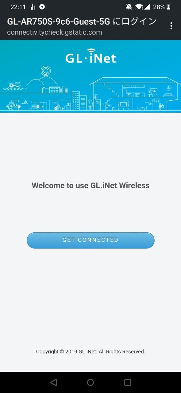 デフォルトのままだとログインと言ってもこの「GET CONNECTED」をタップするだけです。