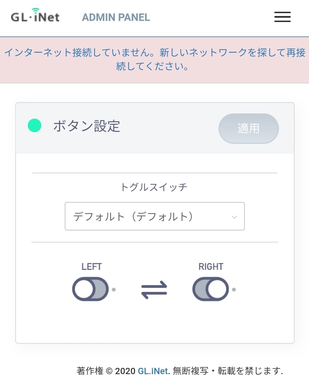リセットボタンとトグル式のボタンがついています。トグル式のボタンは、設定画面からVPNのオンオフなどを自由に設定できます。標準設定では無効になっています。