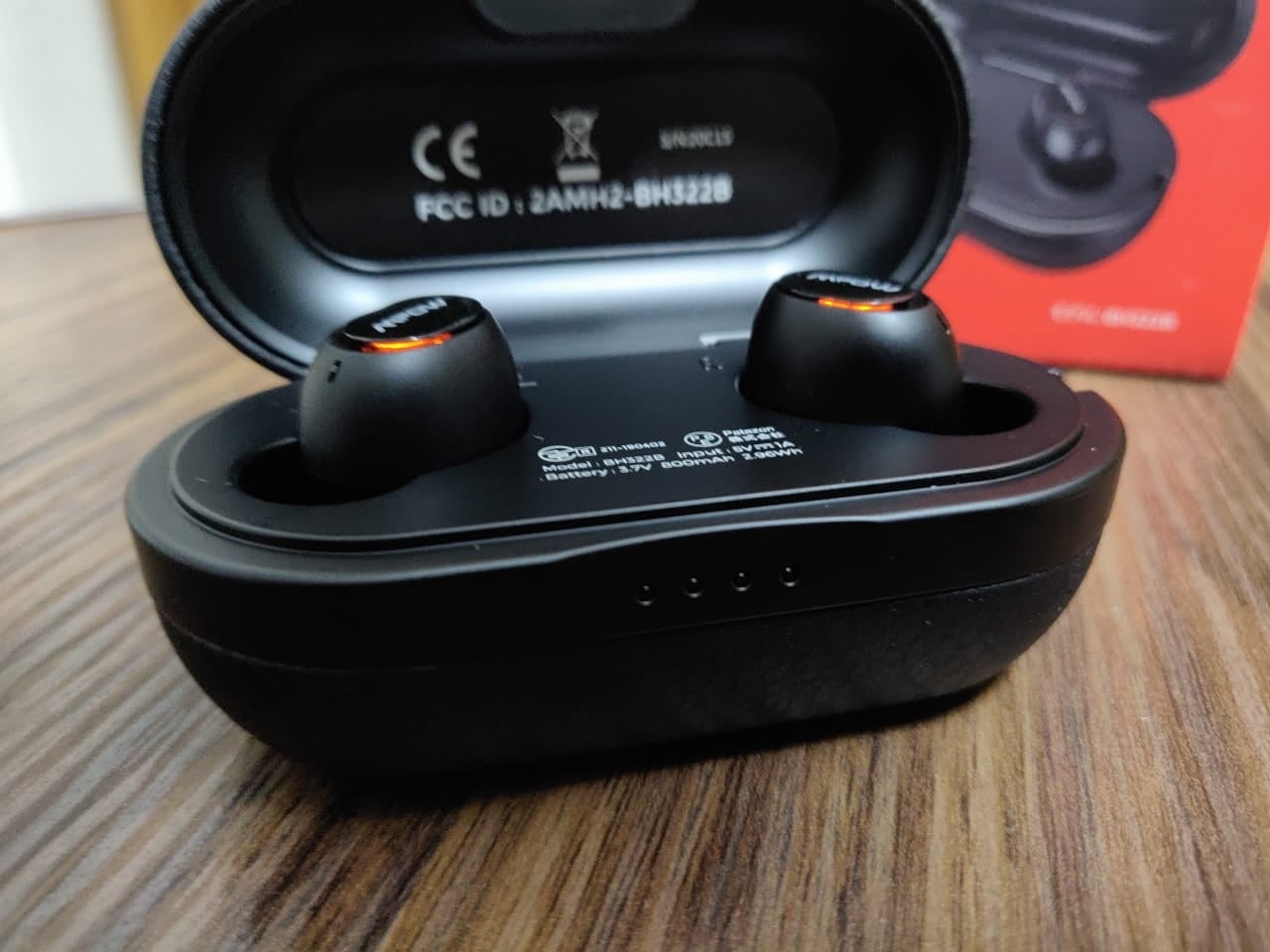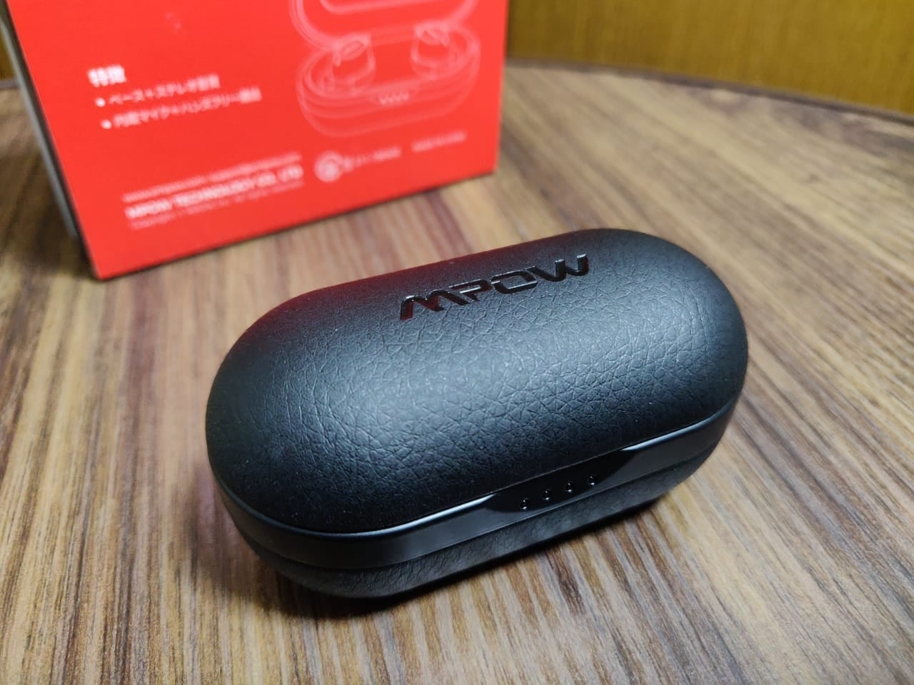 ケース側のバッテリーは、4段階のLEDで確認できるようになっています。AirPodsのような専用アプリが用意されているイヤホンでないとケース側のバッテリーが分からないので、この仕様は地味ながら便利です。